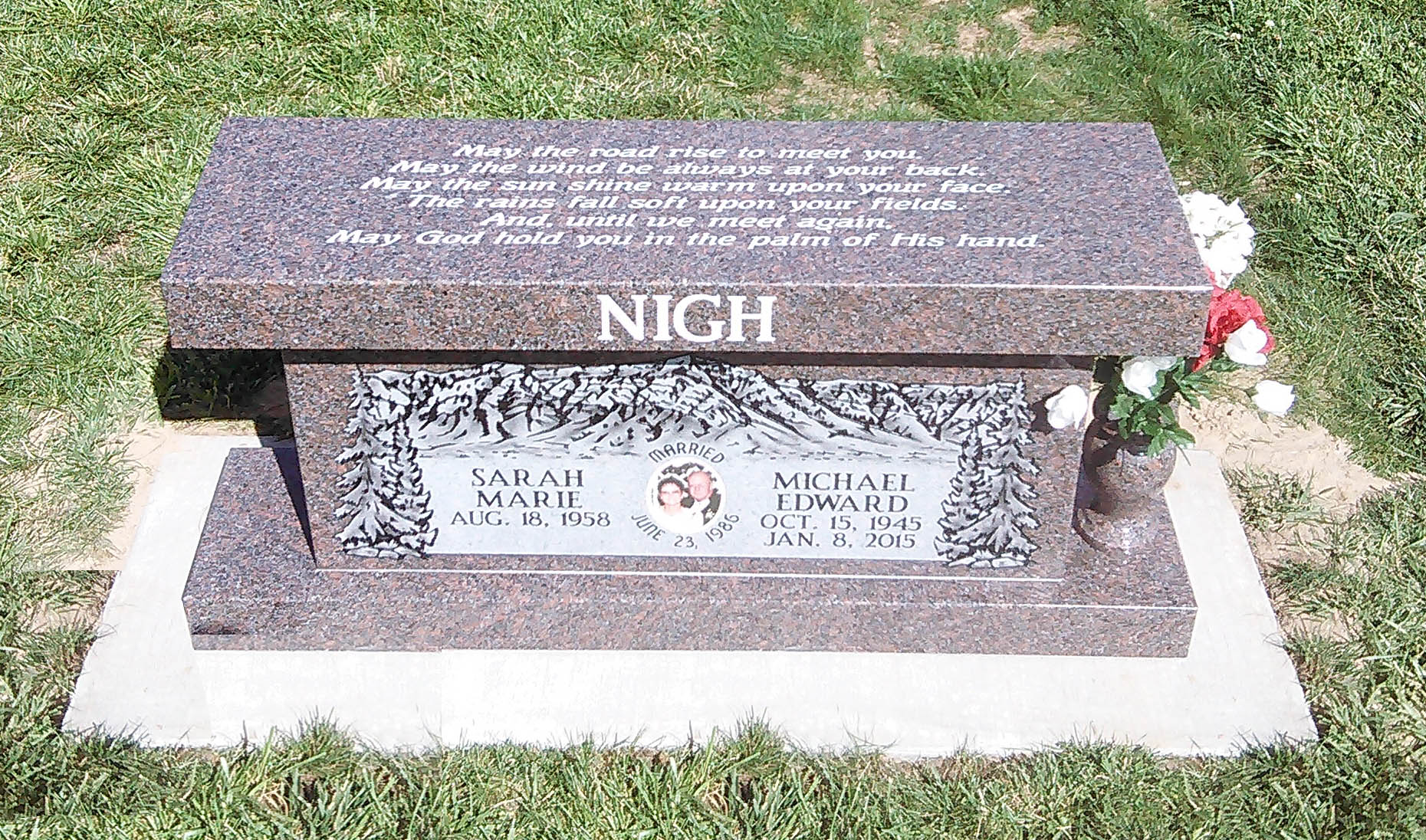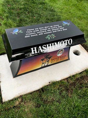 - "We're so glad you showed us the Garden bench with the curved seat. My Mom hated having to leave when her back hurt from standing there looking at the headstone you got us. But now she can sit so she's much happier. She likes to go there and talk to Dad. (and she swears that he's right there talking back to her!) I don't know maybe she's crazy lol but if she's happy, I'm happy! So here's a very big Thank You!!" - Rebecca N.