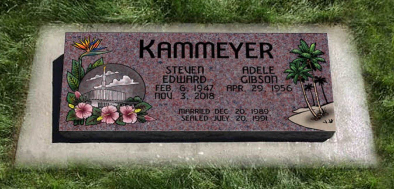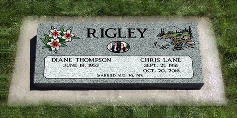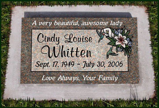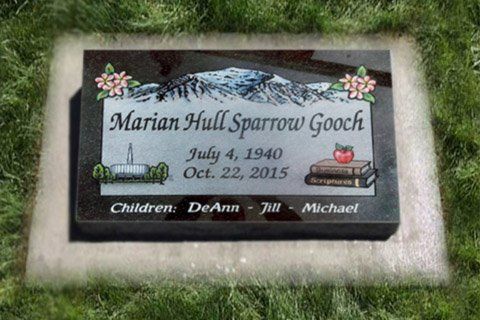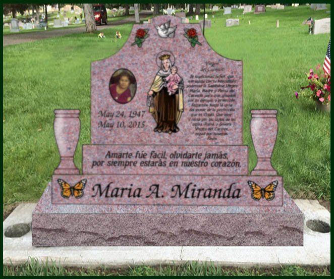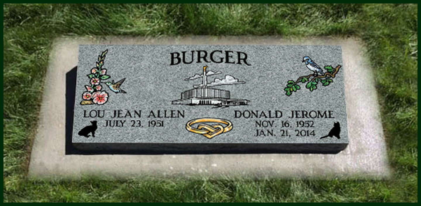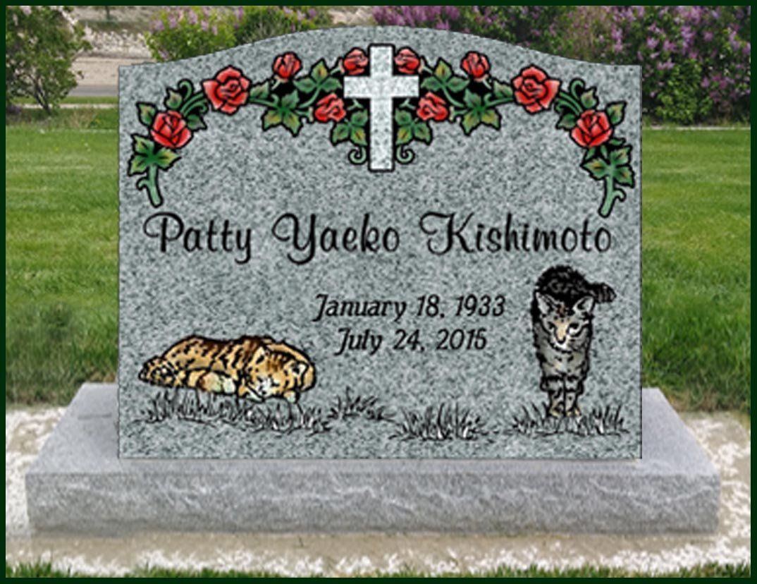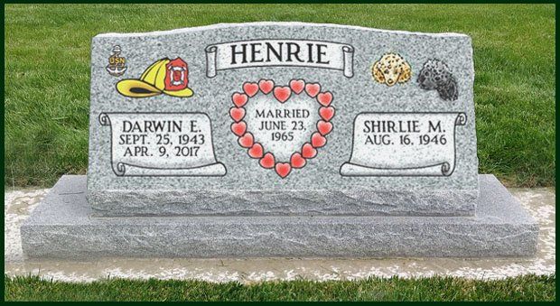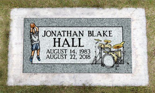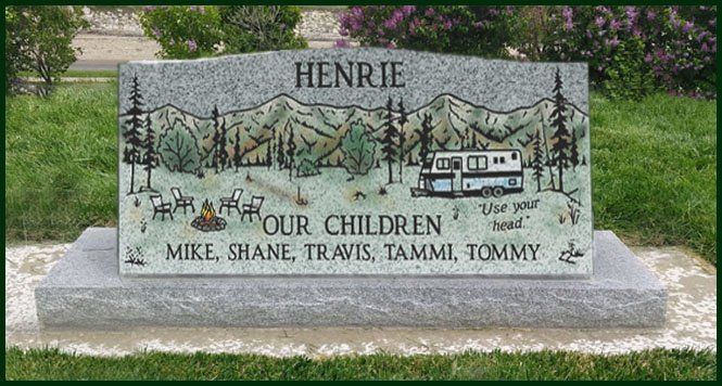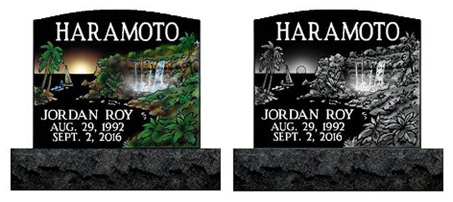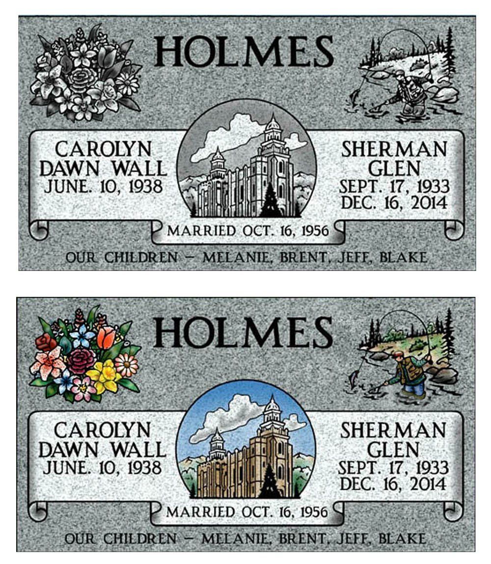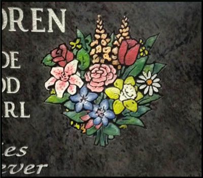 There are times when a headstone design has something about the artwork that just cries out to be in color. Like an American flag, or a familiar cartoon character, they just don't look right in black & white.